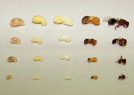 Фараоновы муравьи — самые мелкие муравьи. Их размер колеблется от 1 до 3 мм. Живут они недолго. Через 3-5 недель после спаривания самец погибает. Рабочие особи еле дотягивают до 2 месяцев, а королева — до года. Матка плодовита. Она откладывает по 35 яиц в день. Поэтому колония домашних муравьев постоянно обновляется.